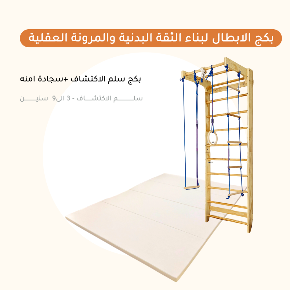 يشمل سلم الاكتشاف السويدي وسجادة اللعب للأطفال لتوفير بيئة آمنة ومناسبة للتمارين والاستكشاف داخل المنزل.