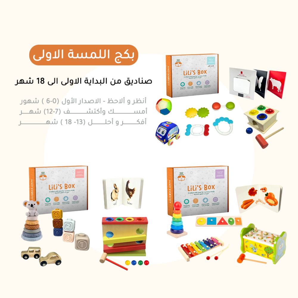 قدمى لطفلك بداية مثالية مع بكج اللمسة الاولى من ليليز بوكس بكج فريد يرافقه من لحظاته الأولى وحتى عمر 18 شهر صمم بعناية فائقة لينمي مهاراته الحسية، الحركية والإدراكية خطوة بخطوة مع 3 صناديق منتسوري مميزة كل مرحلة عمرية تجد لها ألعاب تعليمية آمنة وممتعة، تتيح له اكتشاف العالم من حوله بطريقة شيقة.