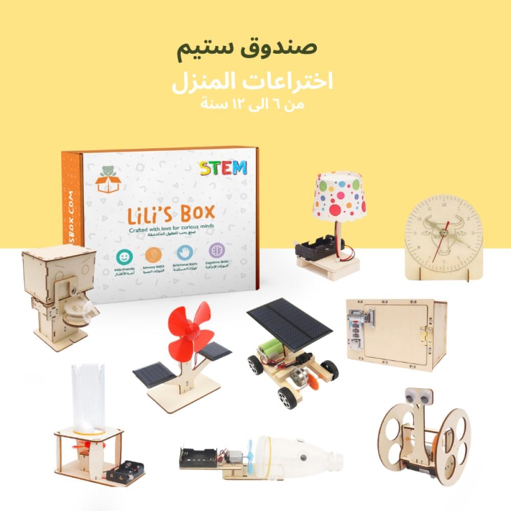 صندوق "اختراعات المنزل" من ليلز بوكس هو صندوق ستيم STEM متكامل للأطفال من عمر 5 إلى 12 سنة. يحتوي على 9 مشاريع علمية تفاعلية تحاكي أدوات وأفكار من حياتنا اليومية، مثل القفل الرقمي، مروحة تعمل بالطاقة الشمسية، مصباح كهربائي، ساعة حائط، والمزيد. كل مشروع مصمم لينمي مهارات الطفل في التركيب، التفكير، والاكتشاف بطريقة ممتعة وآمنة.