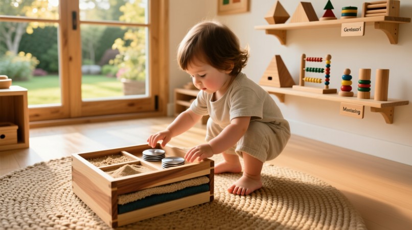 - 0-12 شهرًا: ركزي على ألعاب حسية بسيطة مثل المرايا الآمنة، العضاضات الخشبية أو كرات النسيج الناعمة هذه تعزز النظر واللمس وتكون مثالية لـ منتسوري في المنزل في هذه المرحلة.